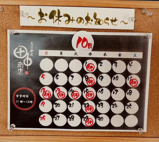 いつも当店をご利用いただきありがとうございます10月のカレンダーです。